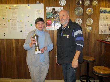Lieselotte Brückner nimmt den Kartoffelpokal entgegen.