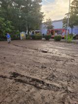 Parkplatz unter Schlamm